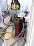 Circulating pump removed, and Kamco Clearflow power flushing pump connected.